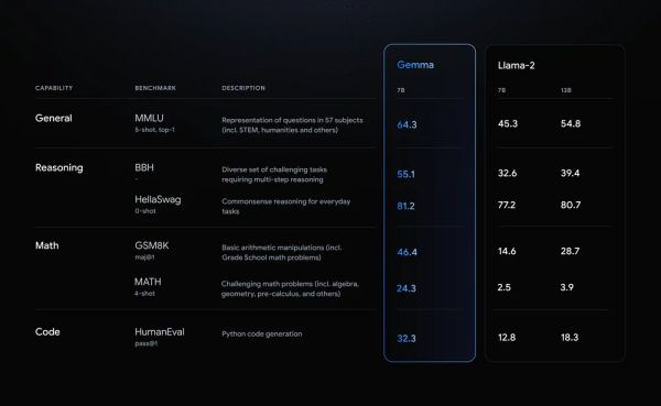 First of all, Gemma model’s performance is the best in its size range, as they share the technical and infrastructure components with the Gemini model, which enables them to surpass Meta Llama-2 and other larger parameter open models in 18 key benchmarks of language understanding, reasoning, math, etc. Moreover, Gemma model can run directly on the developer’s laptop or desktop computer, without the need for additional hardware or cloud services. Notably, Gemma model surpasses significantly larger models on some key benchmarks while adhering to Google’s strict standards for safety and responsibility. For more details on performance, dataset composition, and modeling methods, please refer to the technical report1.